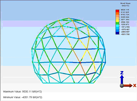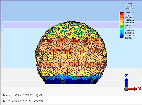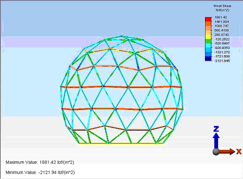 | Case Example 4: Structural Analysis of 41ft (12.6m) Diameter Thin Membrane Geodesic Dielectric Space Frame Radome. |